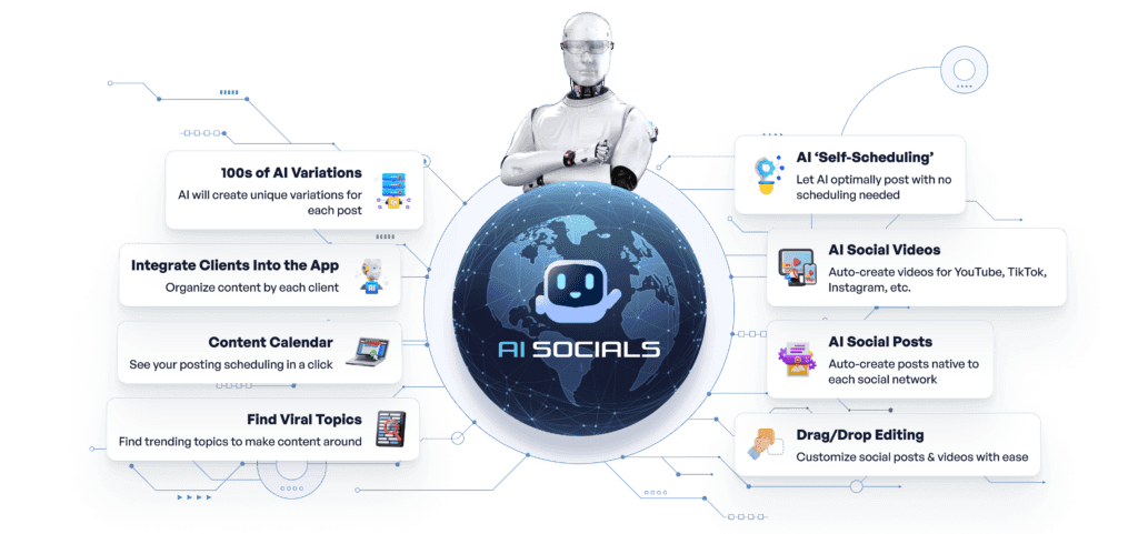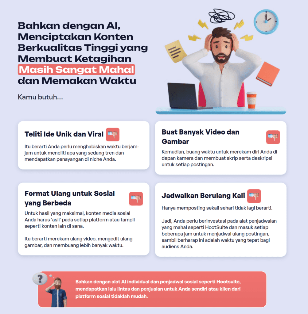 Selain itu, ini adalah satu-satunya alat AI yang memungkinkan Anda mengintegrasikan klien ke dalamnya & membuat/mengelola semua konten & video sosial mereka dengan AI.