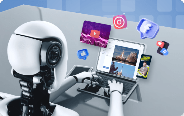 Ini menciptakan postingan & gambar AI untuk Twitter, Instagram, Facebook, & konten video AI untuk YouTube, TikTok, reel, & lainnya.