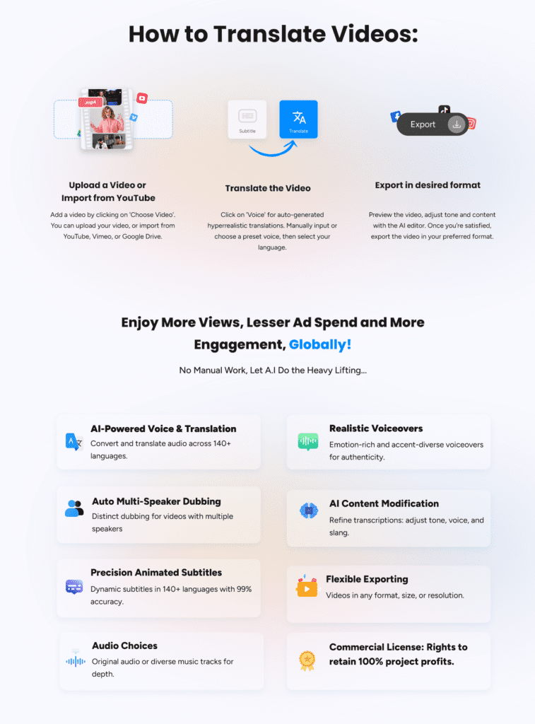 Tantangan terbesar bagi sebagian besar bisnis adalah memiliki konten yang menarik pelanggan untuk menghasilkan penjualan. Redub AI akan membantu Anda membuat video dengan berbagai bahasa juga dapat membantu Anda membuat iklan promosi yang mungkin Anda perlukan jika Anda juga ingin menjalankan iklan berbayar.